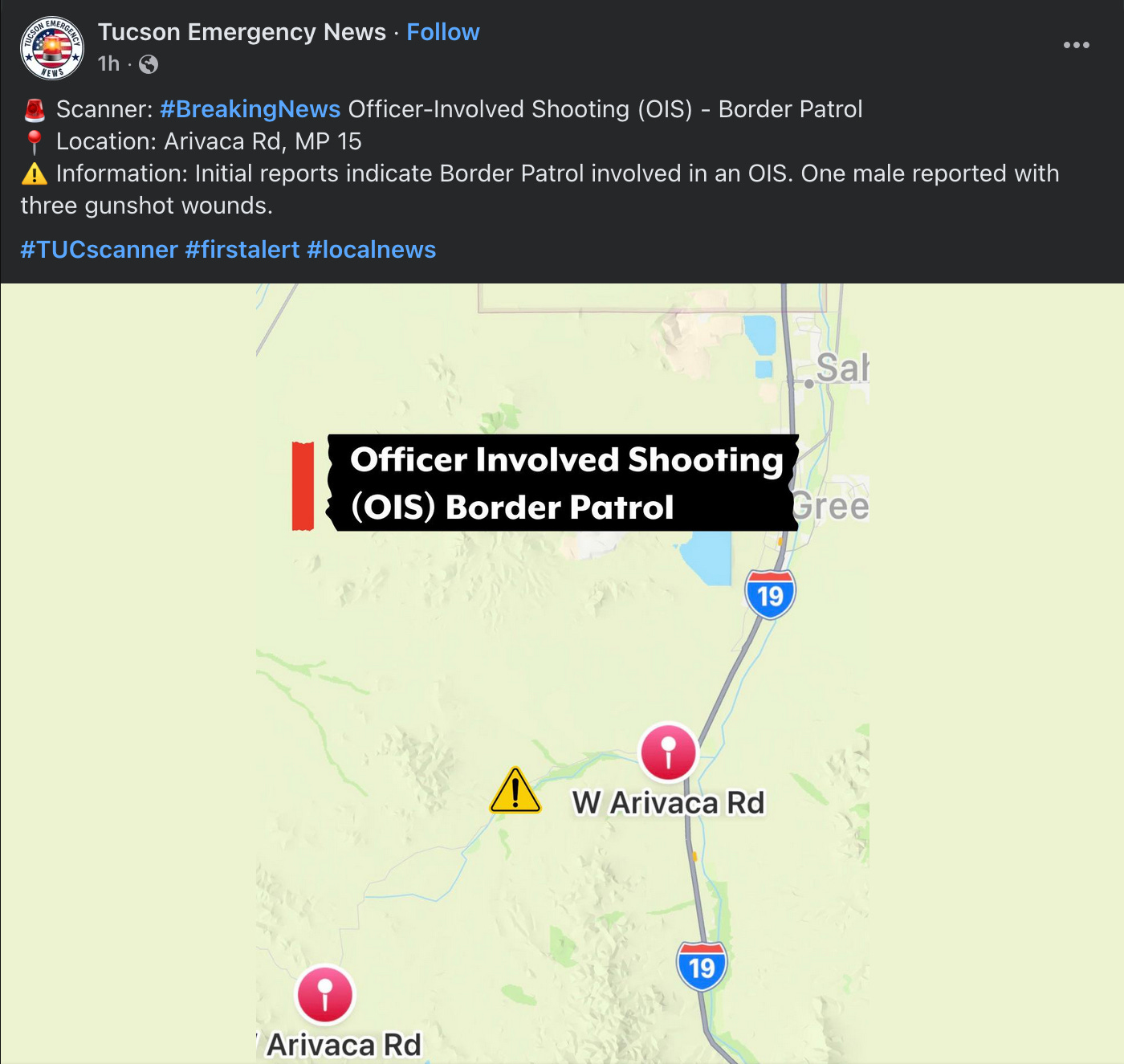 According Green Valley News, emergency responders “found the patient in custody and in critical condition.” As of writing, details about the incident, including the victim’s identity and current condition, are unknown. Tucson Sector Border Patrol did not confirm, deny, or provide any details when asked over the phone. Later in the day, the Pima County Sheriff’s Department issued a statement on social media saying the agency was “responding to a shooting involving U.S. Border Patrol in Arivaca” and is “working in coordination with the FBI Phoenix-Tucson office and U.S. Customs and Border Protection.”